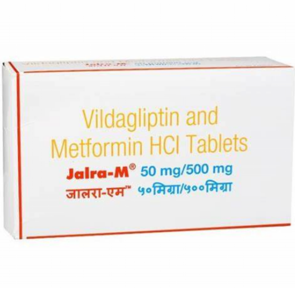 Jalra-M 50mg/500mg Tablet is a combination of two medicines that control high blood sugar levels in people with type 2 diabetes mellitus. This helps prevent serious complications of diabetes such as kidney damage and blindness and may also reduce your chances of having a heart attack or stroke.