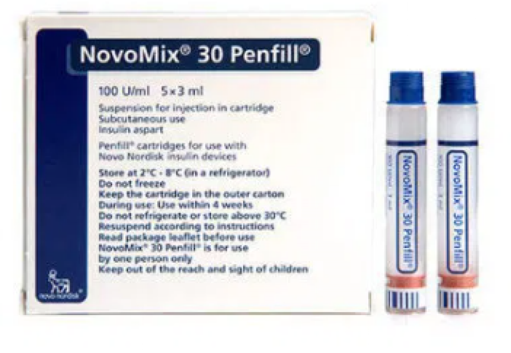Novomix 30 100IU Penfill (3ml Each) is a combination of two medicines used to improve blood sugar control in people with type 1 and type 2 diabetes mellitus. It is a fast-acting type of insulin that helps to lower blood sugar levels after meals and reduce the chances of developing serious complications of diabetes.