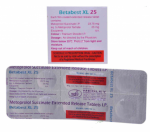 Prolomet XL 25 Tablet is a long-acting beta blocker that works specifically on the heart. It works by slowing down the heart rate and makes the heart more efficient at pumping blood around the body.