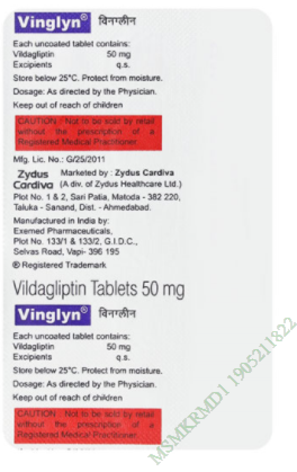 Vinglyn Tablet is normally prescribed when diet and exercise alone or other medicines do not prove sufficient to control your blood sugar level. Your doctor may prescribe it alone or in combination with other diabetes medicines. It can be taken with or without food. The dose will depend on your condition and blood sugar levels. Use it strictly as advised by your doctor.