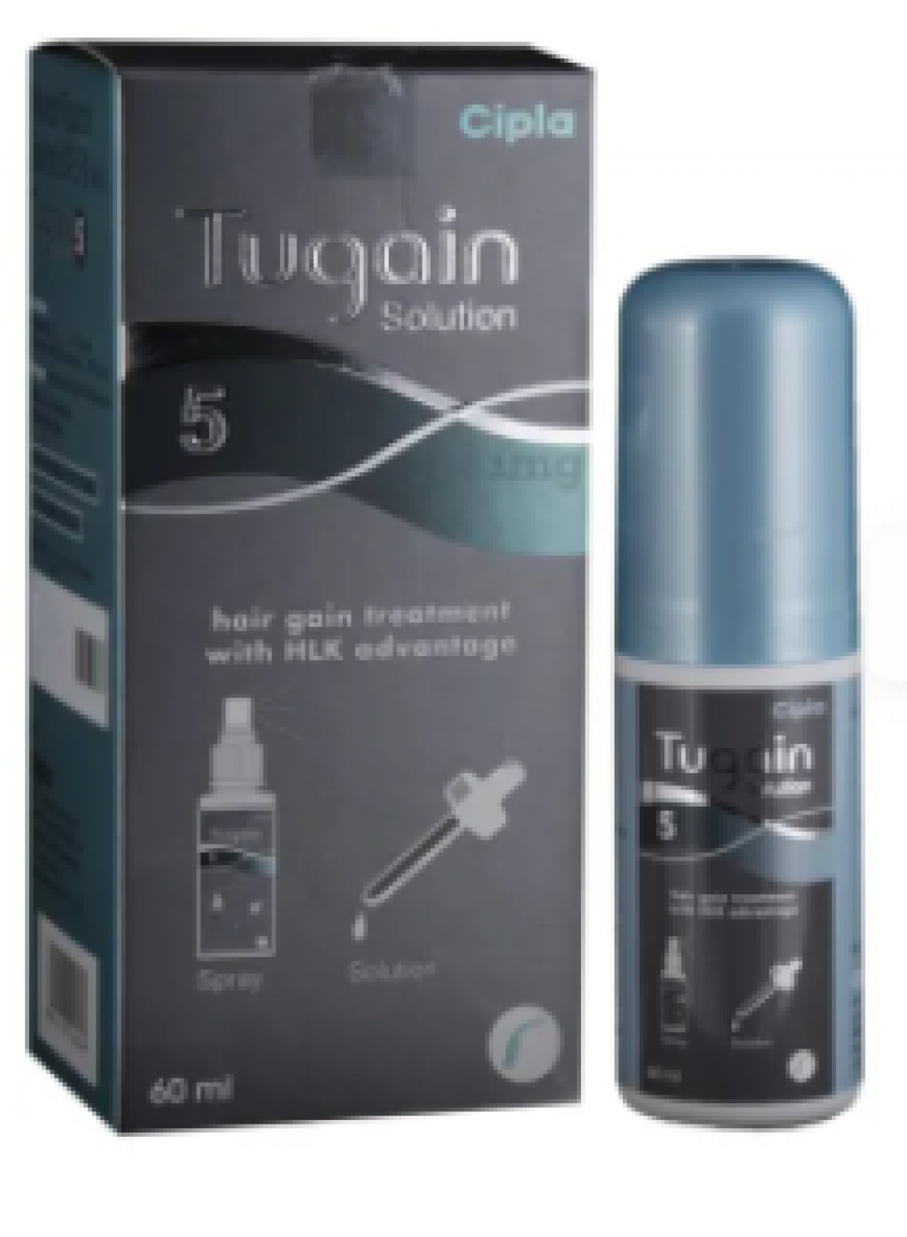 Tugain 5% Solution is a medicine used to treat common hereditary hair loss. It can prevent further hair loss and help hair to re-grow. It works by increasing blood flow to the hair follicles on your scalp, which prevents hair cell death and also enhances new hair growth. It is most effective for baldness or thinning at the top of the scalp but less effective at the front or for receding hairline.